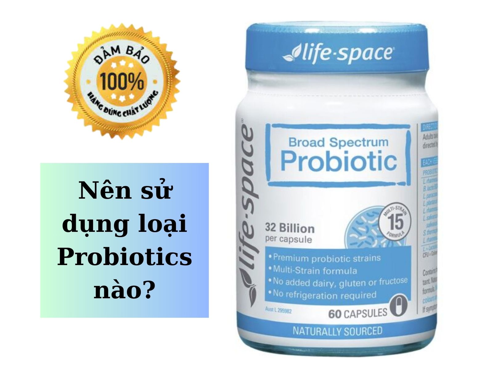 Broad Spectrum Probiotic là một sản phẩm men vi sinh của thương hiệu Life Space (Úc). Các chủng men vi sinh có trong viên Broad Spectrum Probiotic đã được làm bất động và bào chế dưới dạng từng viên nang. Khi bạn sử dụng, những men vi sinh có trong viên uống khi vào trong ruột sẽ được kích hoạt và hoạt động trở lại. Sản phẩm này không phải là thuốc nên rất an toàn cho sức khỏe, có thể sử dụng được cho trẻ nhỏ và cả người trưởng thành.
